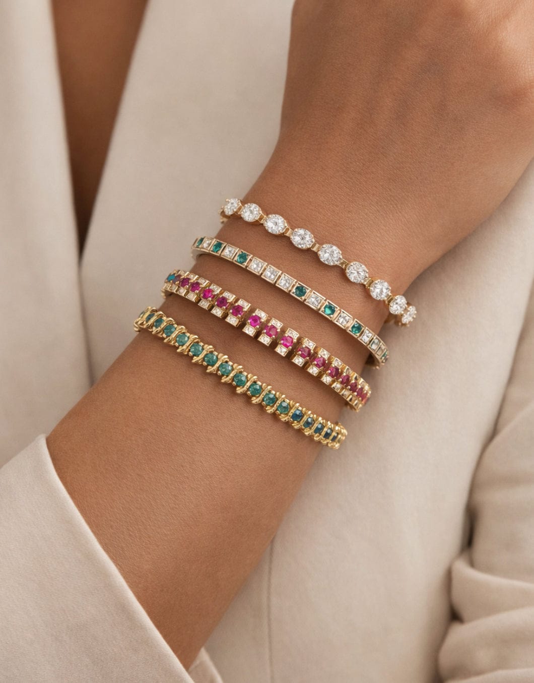1 Carat Three Row Diamond Yellow Gold Ring