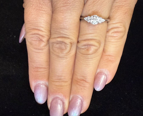 14K White Gold Round Brilliant Cut Diamond Ring with accent stones