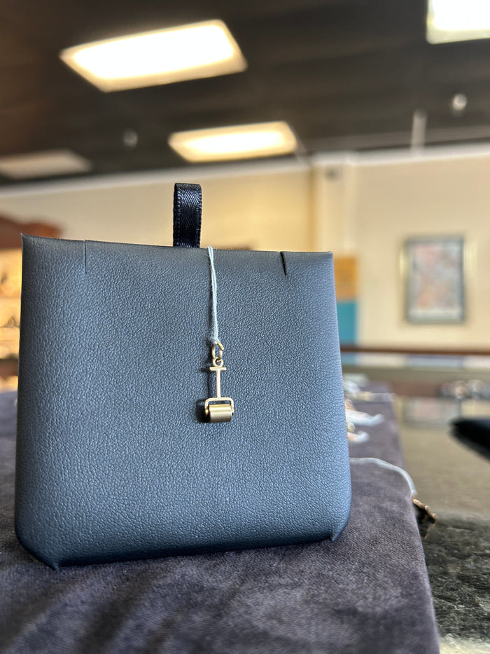 This rollable charm features a vintage lawnmower design, crafted from 1 gram of 14kt yellow gold. Perfect for the playful and quirky charm collector, this pre-owned piece measures 15mm by 5mm. Mow down the competition with this retro addition to your charm collection!