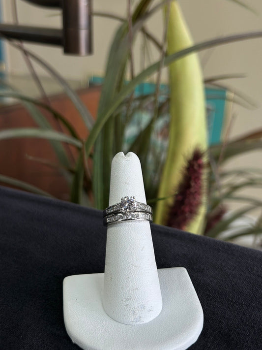 Princess Cut Center stone with Baguette Side Stones Two Toned Engagement Ring