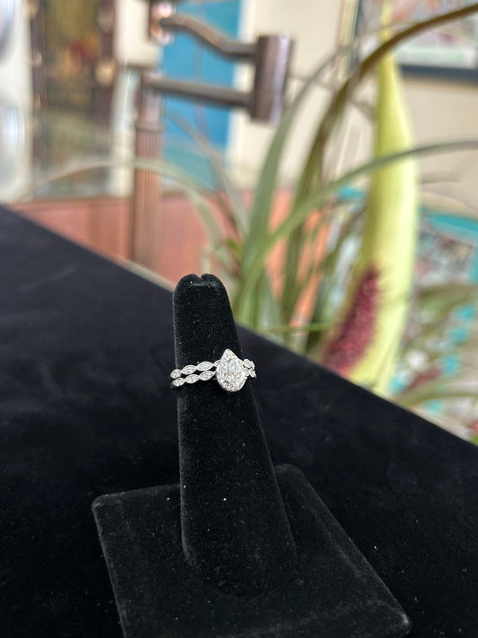 Pear Cut Engagement Ring with Matching Band Wedding Set