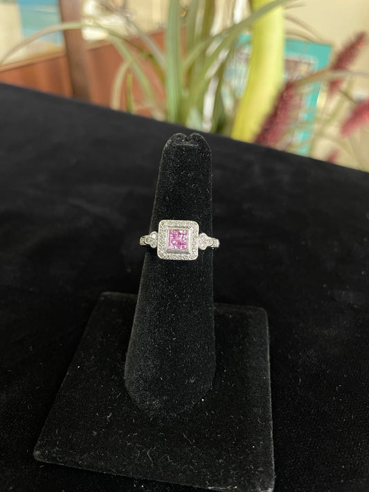 White Gold Sapphire Gemstone with Diamond Halo Ring