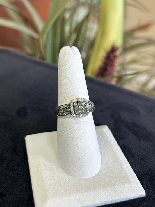 Aquamarine and Cubic Zirconia Sterling Silver Gemstone Ring