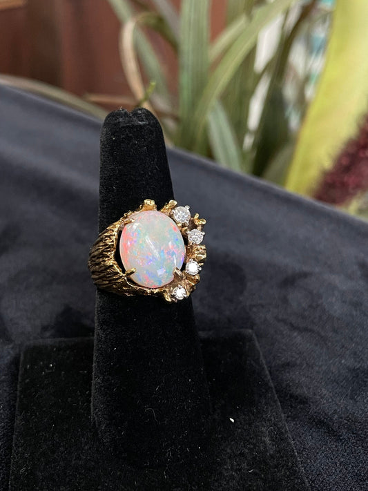 Opal and Diamond 18K Yellow Gold Gemstone Ring