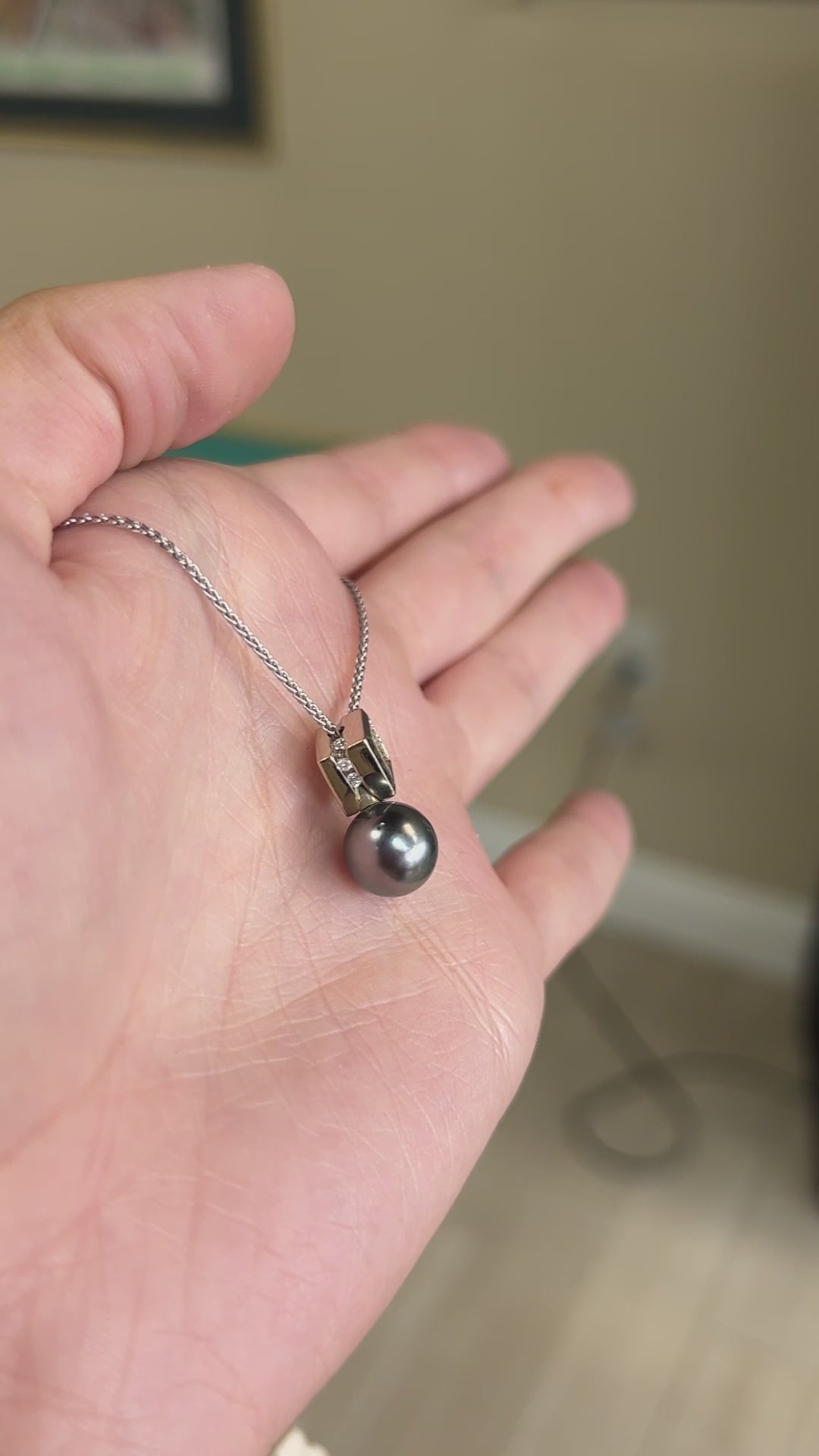 Black Pearl and Diamond Necklace in White Gold